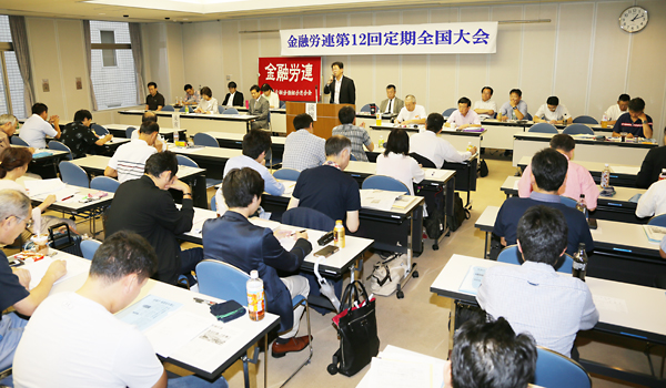 9月16日(土)~17日(日)、金融労連は第12回定期全国大会を東京で開催し、代議員・役員・オブザーバーなど全国から77人(委任状含む)が参加しました。